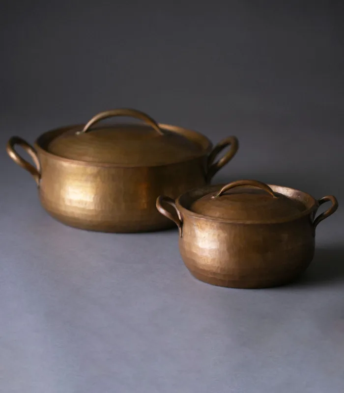 持ち手と本体を一枚の銅板から形にしたフライパン