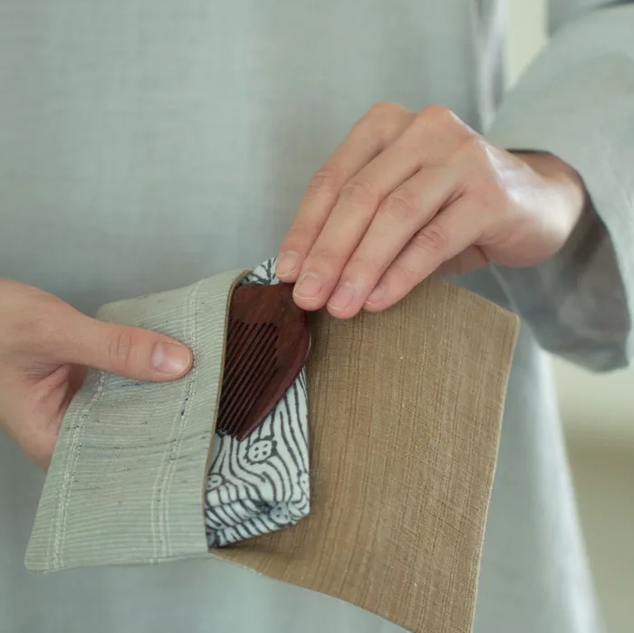 おしゃれはちょっとした身の回りの小物から 木の櫛とブロックプリントハンカチのセット