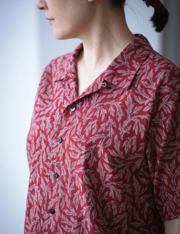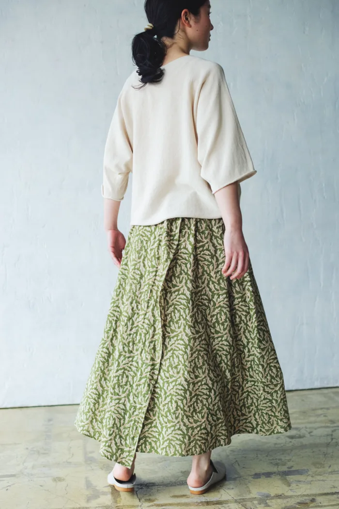 インドの木版ブロックプリントで仕立てた、ヨモギ柄のスカートとブラウス