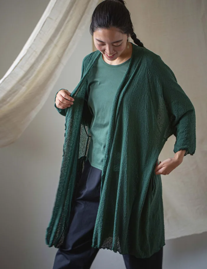 裾は編み出し仕上げにこだわり ニットのような特徴も合わせ持つ