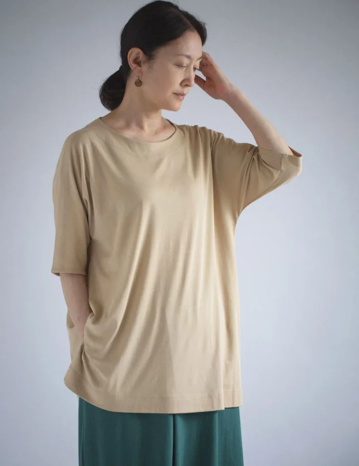 インナーにも使える すっきりとしたデザインの七分袖Tシャツ