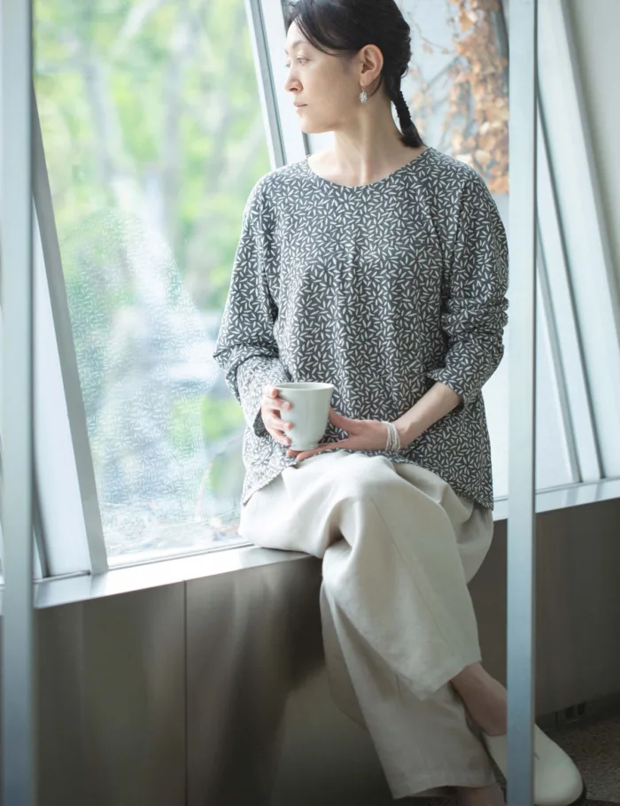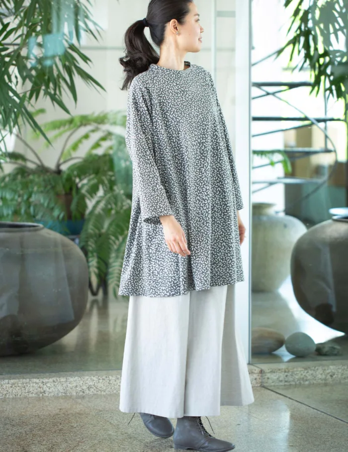 肌触りが爽やかなリネンコットンの天竺生地に 木版で手押しした
