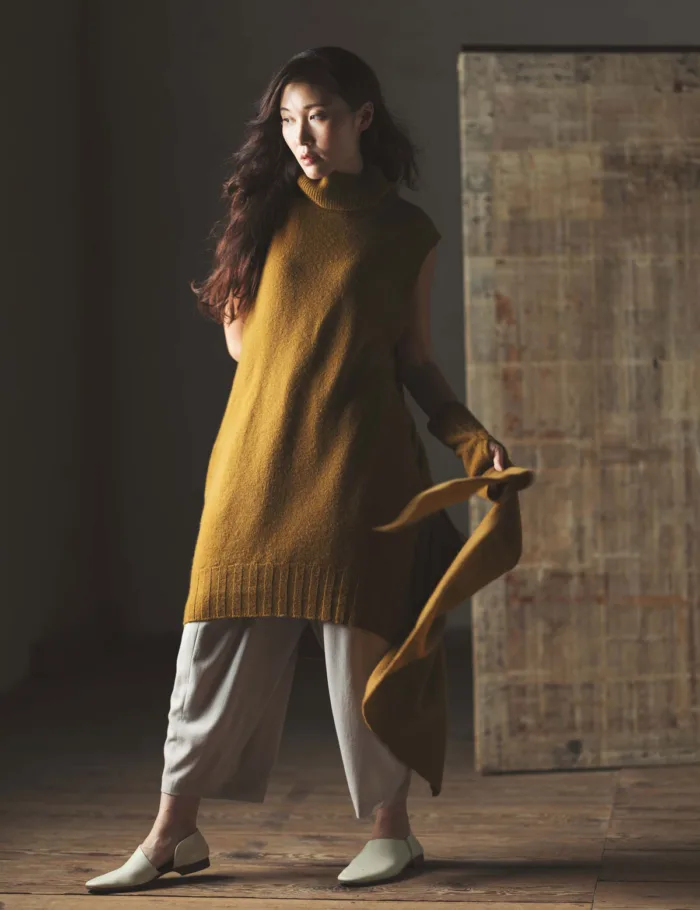 たっぷりとした身幅でヒップが隠れる丈のニットベスト