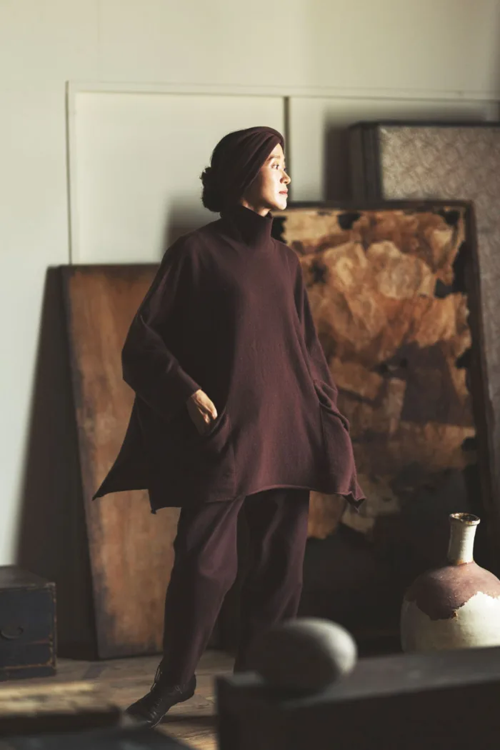 デザイン性の高いポンチョタイプで主役となるニット