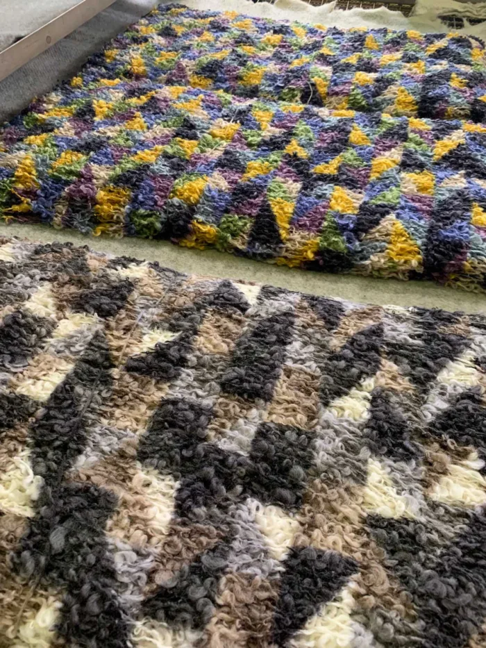 多色のまだらに染められた、まるで絨毯のような糸の束
