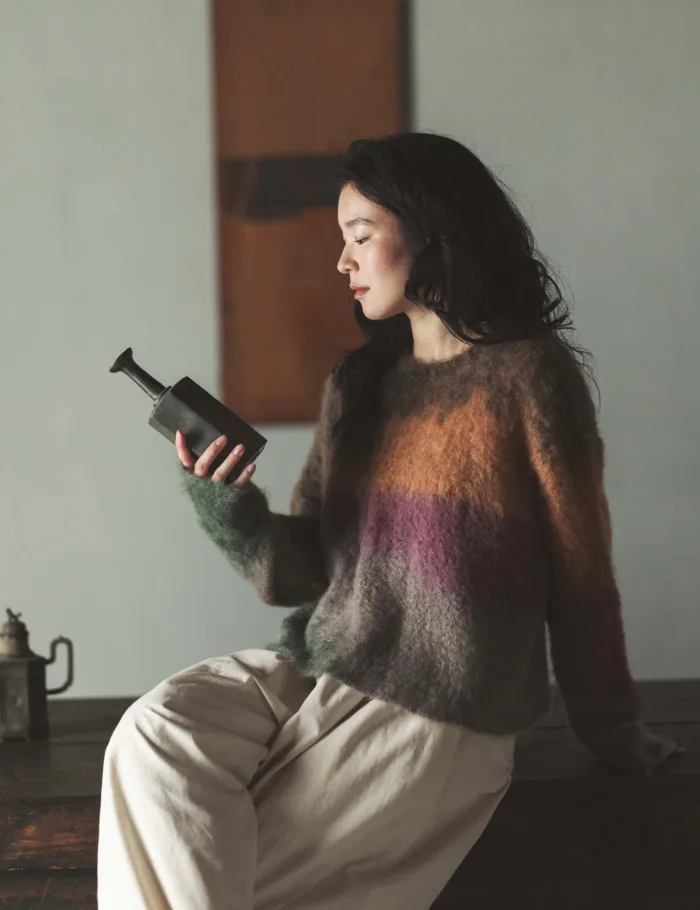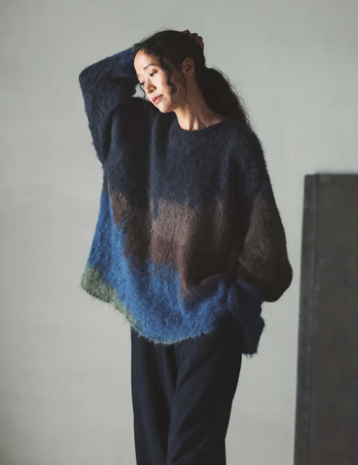 今シーズンは、糸から染めた注染ウールスラブと、製品を染めたモヘア注染