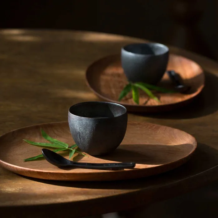 ココナツでつくられたデザインが楽しいスプーンを 茶さじとして組み合わせました