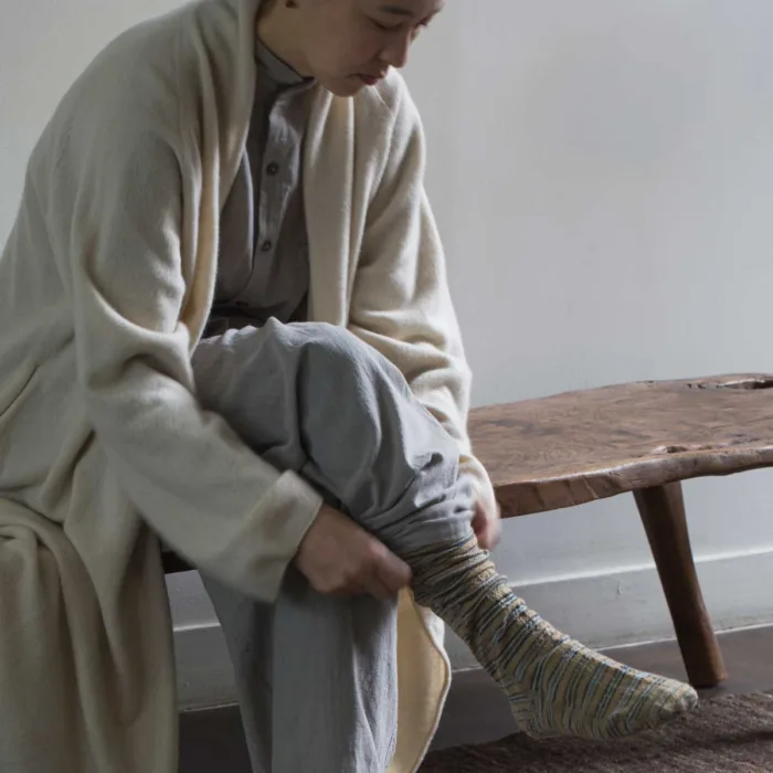 あたたかみのある表情に仕上げたウールのボーダーソックス